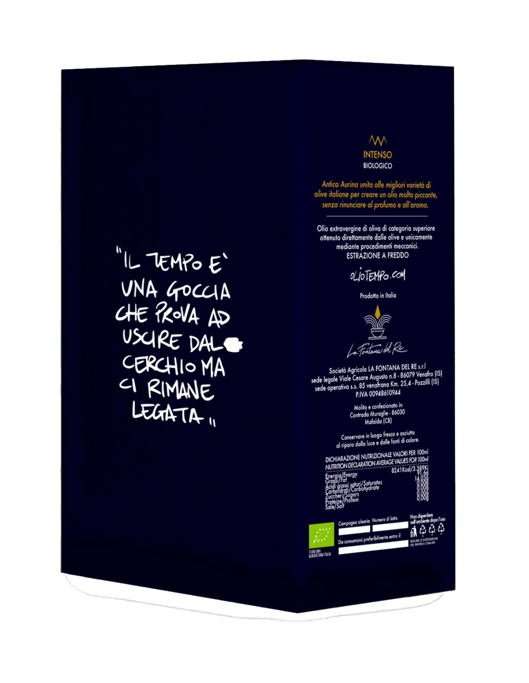 Intenso – Antica Aurina unita alle migliori varietà di olive italiane biologiche per creare un olio molto intenso e piccante, senza rinunciare al profumo e all'aroma.