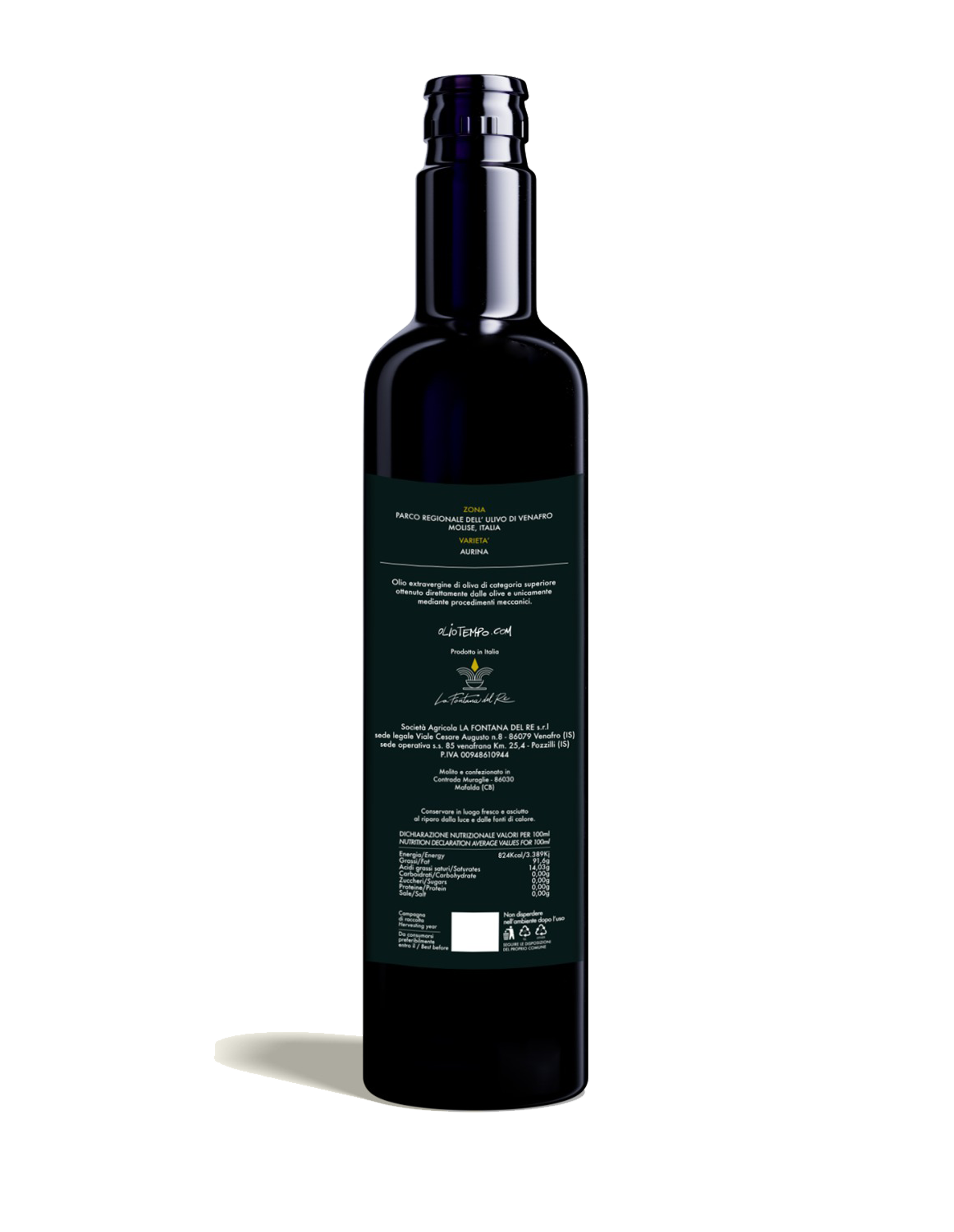 - Dall'antica varietà Aurina – Coltivata secondo metodi naturali e raccolta a mano, raccolta a mano nel parco dell'ulivo di Venafro